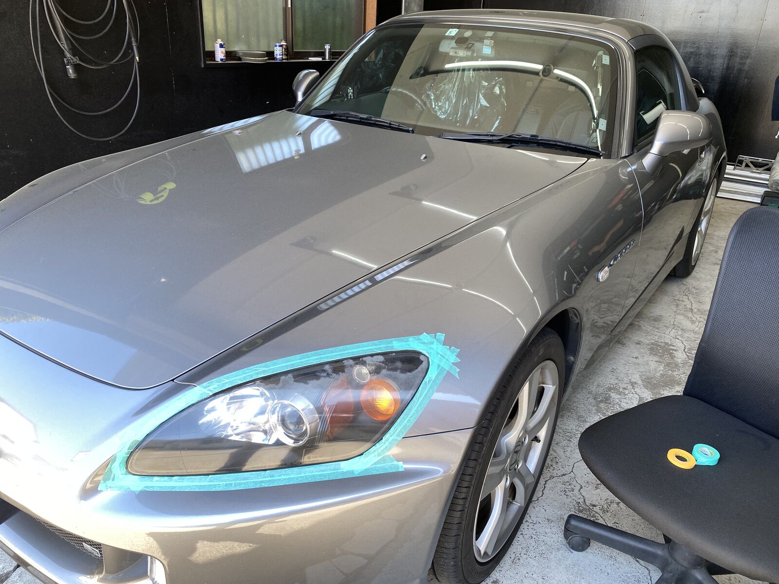 ホンダ S2000のヘッドライト研磨とプロテクションフィルム施工です